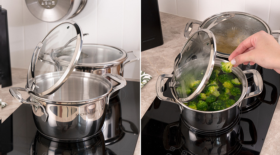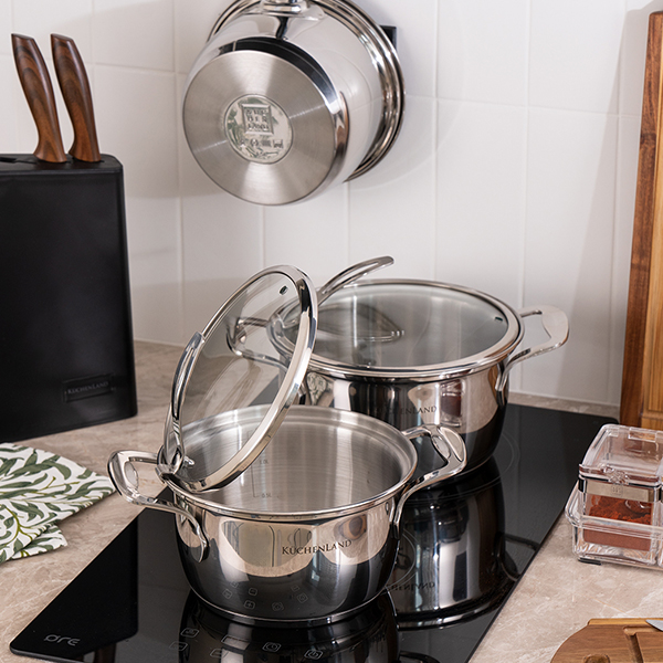 • Следите за температурным режимом. Перегрев и резкое охлаждение приводят к микротрещинам на антипригарном покрытии, потере блеска нержавеющей стали. Используйте подставки под горячее, не ставьте раскаленную кастрюлю в холодную раковину, нагревайте ее постепенно.